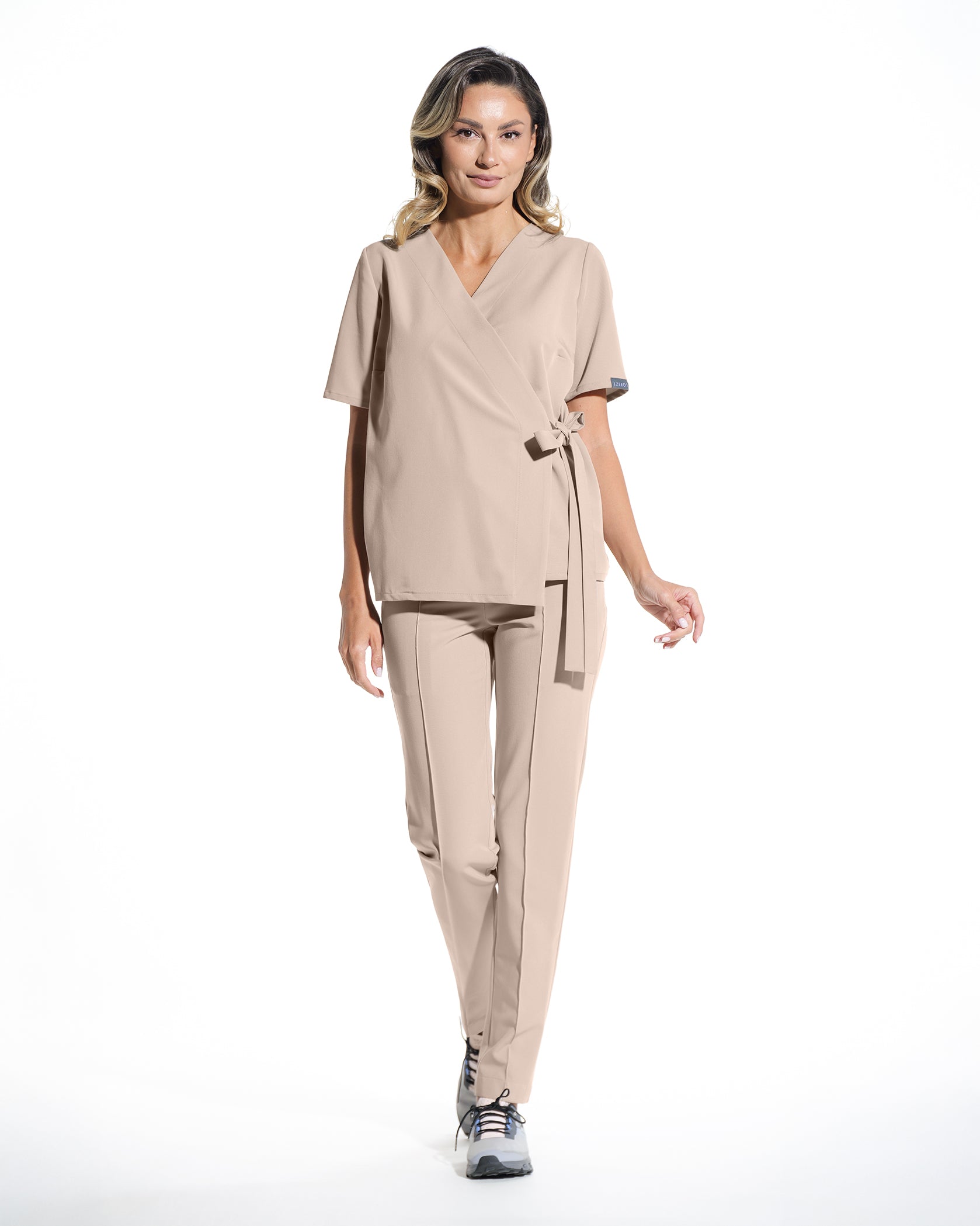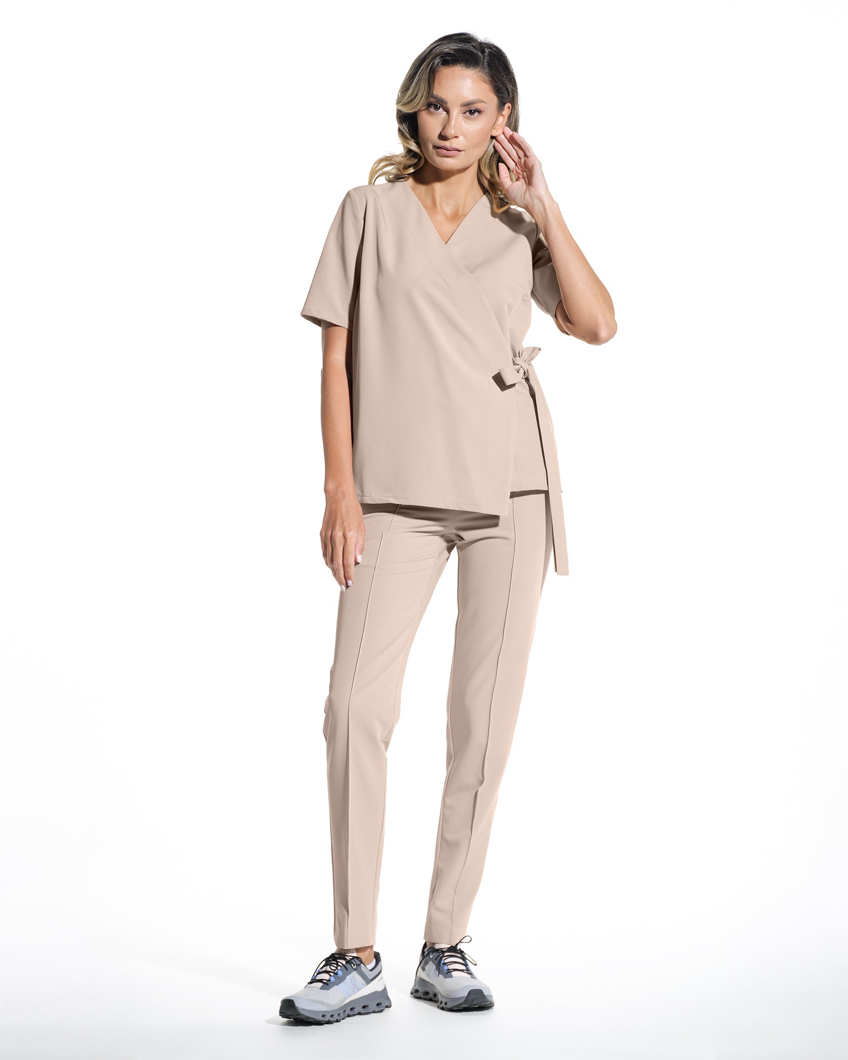 Die medizinische Bluse ANAIS verleiht Ihrer Berufsgarderobe zusätzlichen Komfort und Stil. Inspiriert vom Kimono-Design, mit einem lockeren und eleganten Schnitt, ist diese Bluse ideal für Momente, in denen Sie volle Bewegungsfreiheit und ein entspanntes Outfit benötigen. Das Schnürsystem ermöglicht eine einfache Anpassung der Bluse an Ihre Figur und bietet sowohl Funktionalität als auch Leichtigkeit.