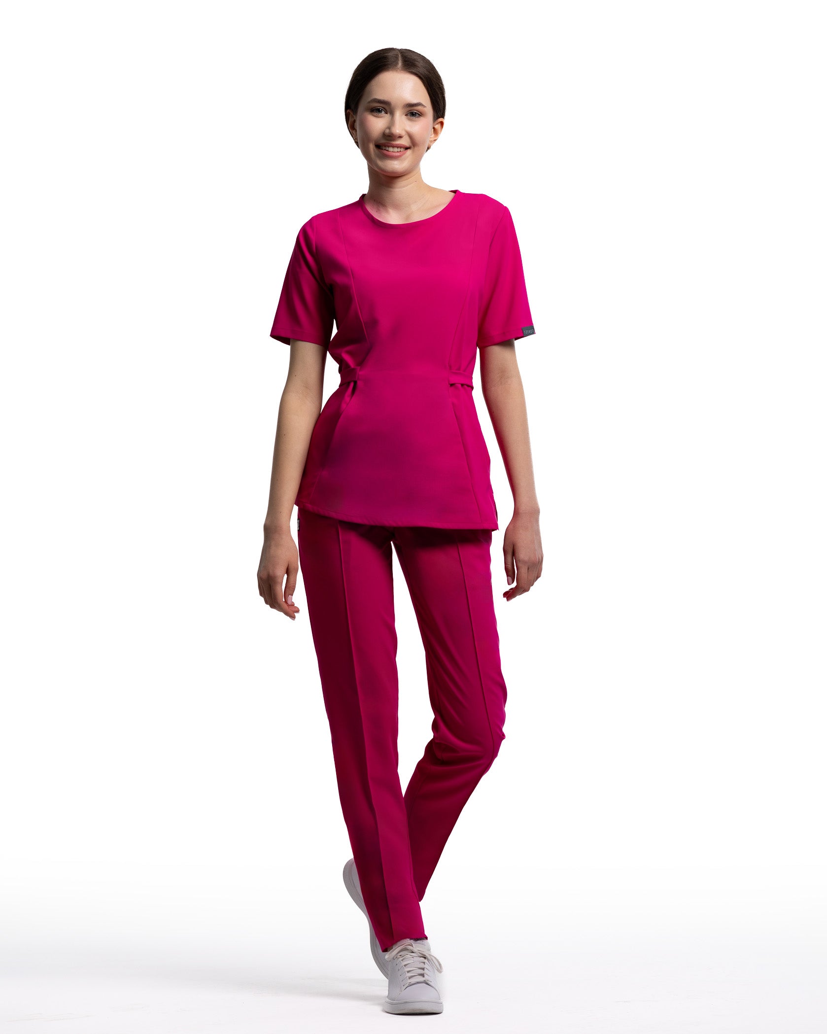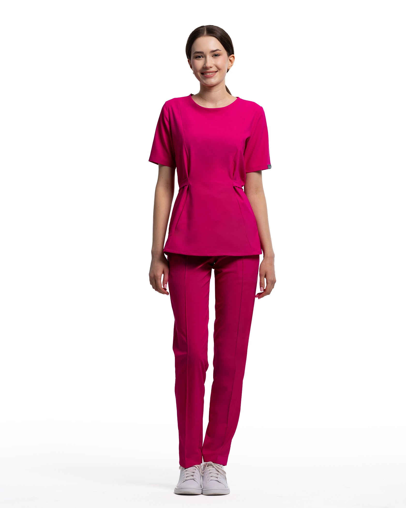 Die medizinische Bluse Thalya verbindet Eleganz und Zweckmäßigkeit und ist ideal für jene, die ein weibliches, tailliertes, aber bequemes Design suchen. Die praktische Fronttasche ist perfekt zur Aufbewahrung wichtiger Gegenstände und bietet schnellen und effizienten Zugriff. Sie ist eine vornehme Wahl für ein professionelles und modernes Erscheinungsbild, dank des Taillenbands, das eine perfekte Anpassung und zusätzlichen Komfort den ganzen Tag über gewährleistet. Hergestellt aus einem weichen, elastischen und atmungsaktiven Stoff, hält sie keine Feuchtigkeit zurück und erlaubt Bewegungsfreiheit.