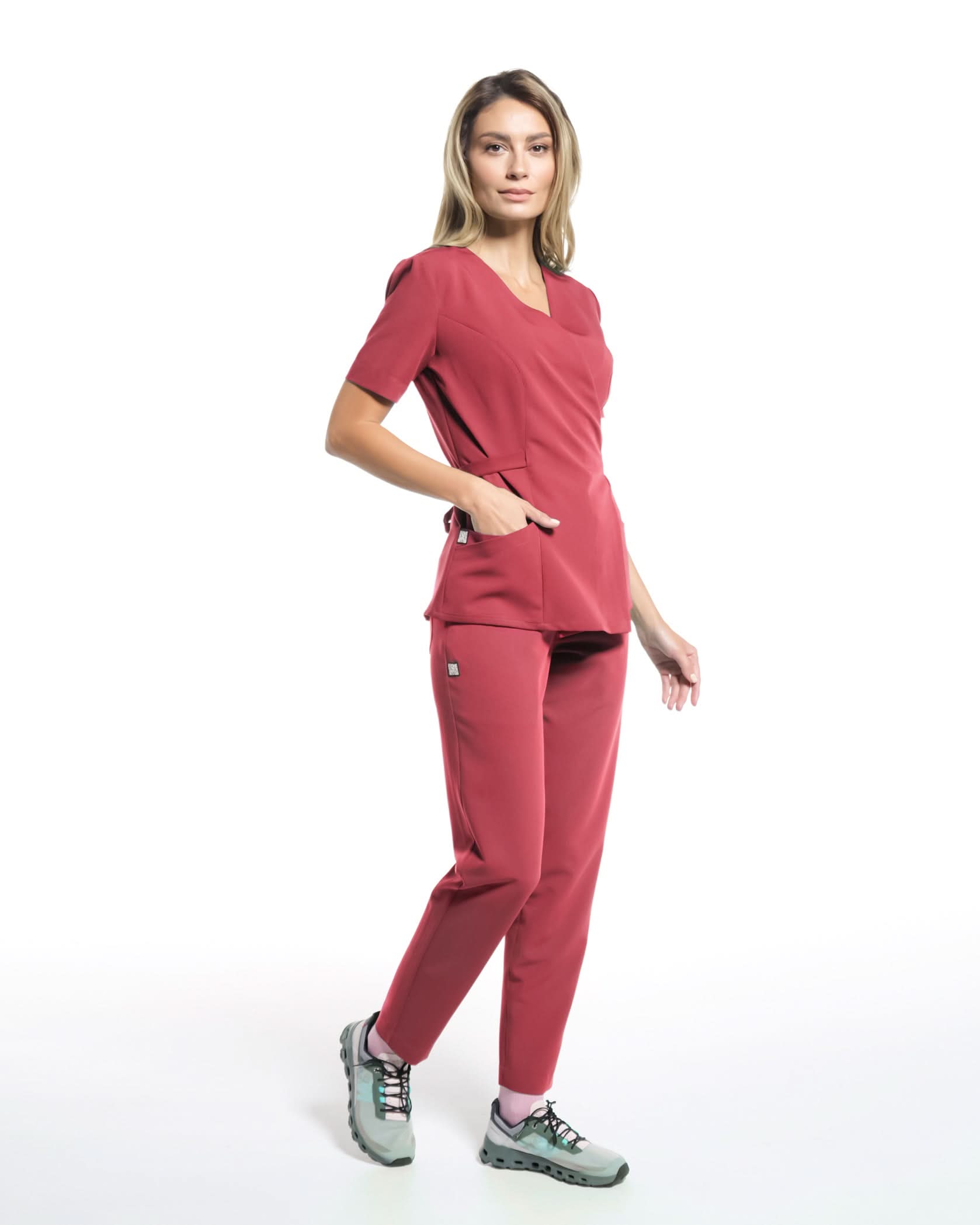 SIENA cream-colored conical medical trousers, made of elastic fabric, with 4 pockets. The material from which the trousers are made is soft, breathable, comes from renewable raw materials, and has both elasticity and wrinkle resistance.