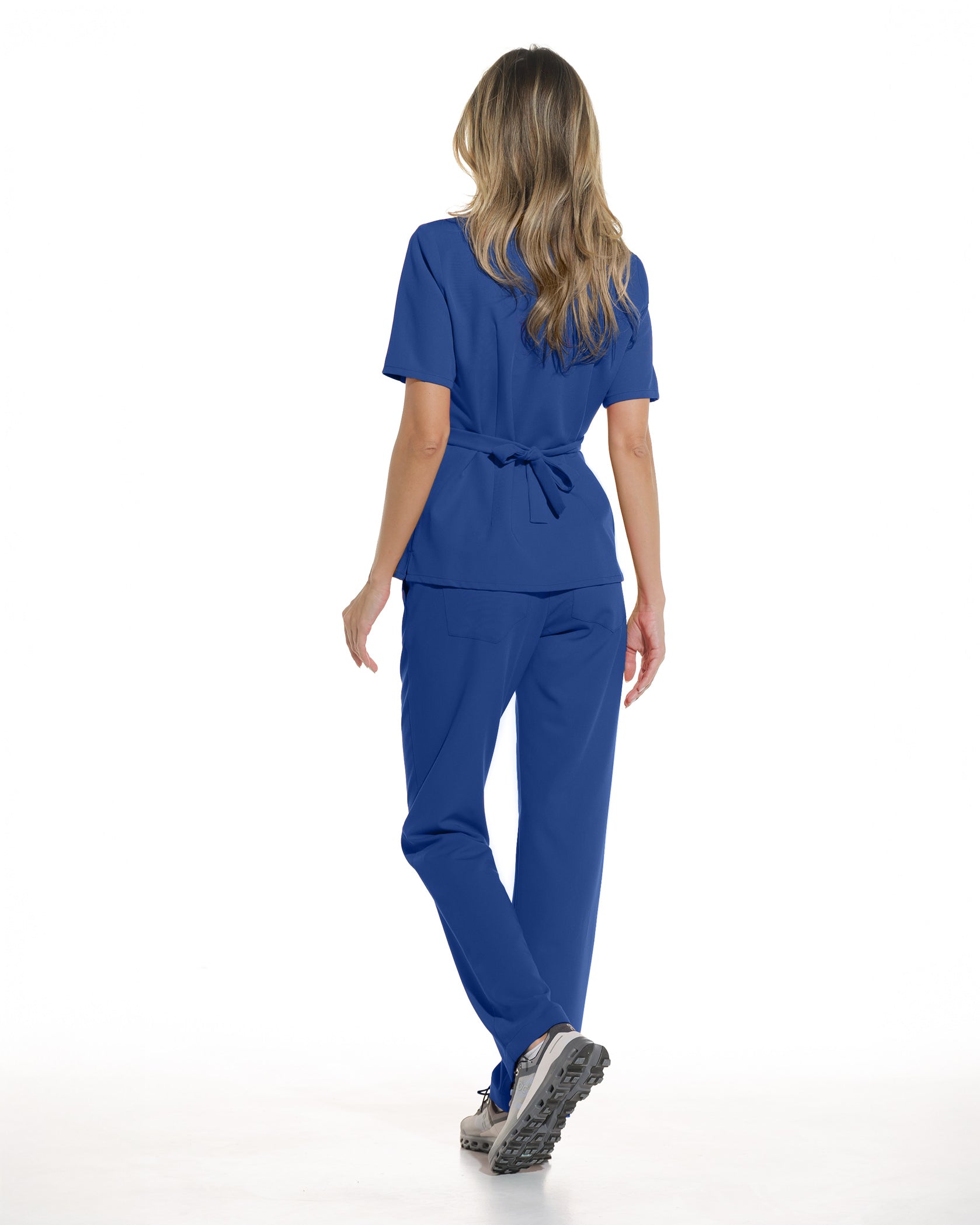 Bluza medicala royal blue cu talie reglabila cu cordon si buzunar frontal.