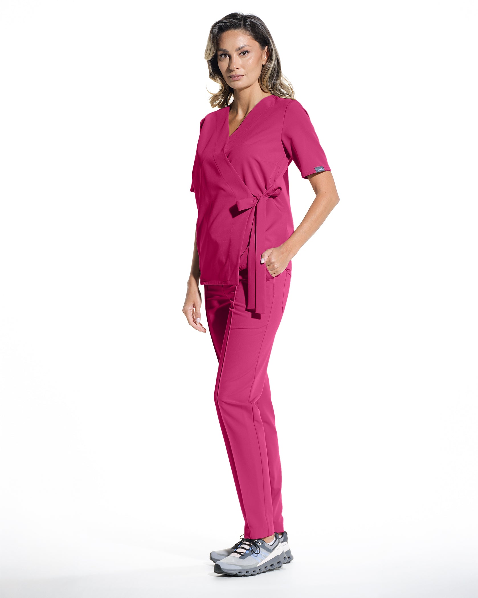 Bluza medicala ANAIS aduce un plus de confort si stil garderobei tale profesionale.Inspirata din designul kimono, cu un croi lejer si elegant, aceasta bluza este ideala pentru momentele in care ai nevoie de libertate deplina de miscare si o tinuta relaxata . Sistemul de inchidere cu snur isi permite sa ajustezi usor bluza pe silueta , oferind atat functionalitate si lejeritate