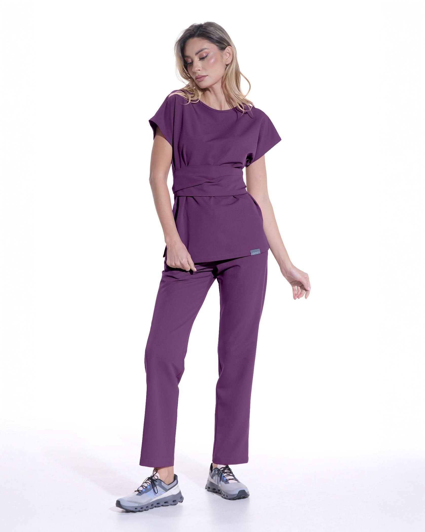Bluza medicala CELESTE plum cu talie reglabila cu cordon si buzunar frontal. Materialul din care este confectionata bluza este moale, respirabil, provine din materie prima regenerabila, avand atat elasticitate, cat si rezistenta la sifonare.