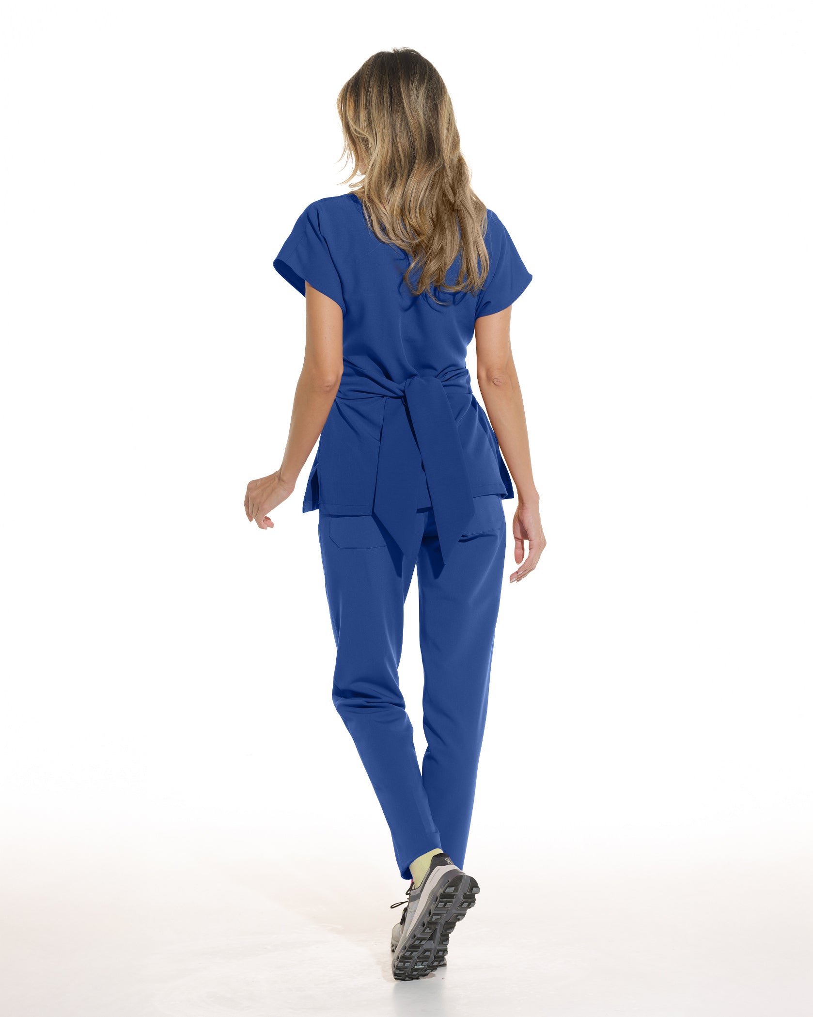 Bluza medicala royal blue cu talie reglabila cu cordon si buzunar frontal. Materialul din care este confectionata bluza este moale, respirabil, provine din materie prima regenerabila, avand atat elasticitate, cat si rezistenta la sifonare.