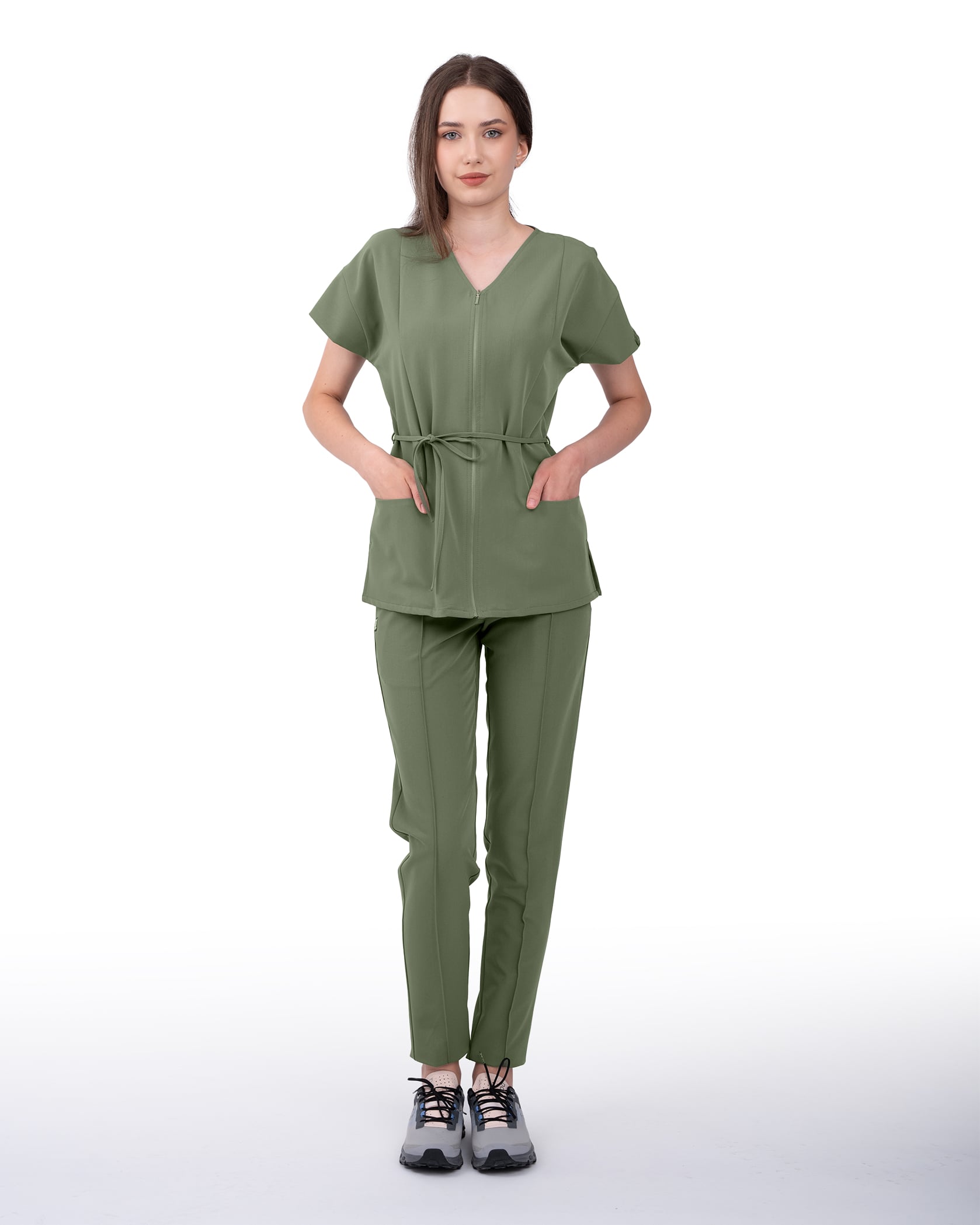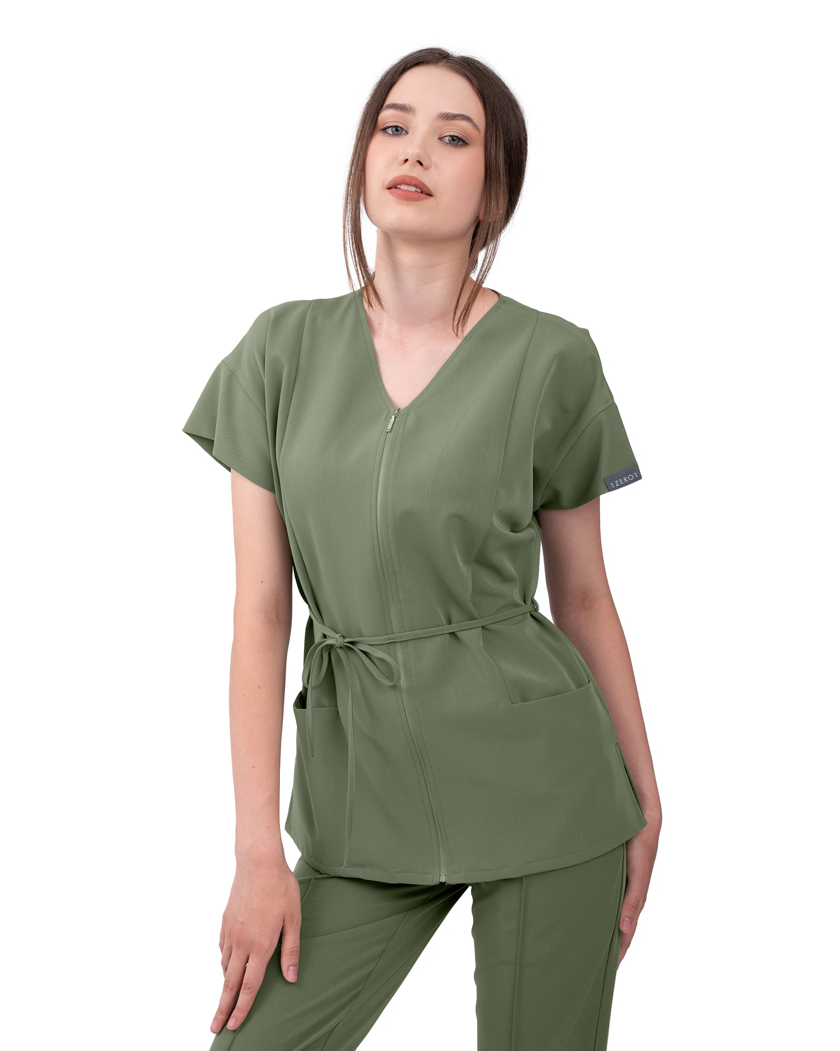 Bluza medicala Rosa pastreaza liniile clasice, dar le da un twist modern care aduce un strop de stil si individualitate fiecarei zile la cabinet. Prevazuta cu un fermoar frontal discret, ofera un look curat si profesional, dar si un plus de comoditate la imbracare. Cele doua buzunare generoase sunt gandite pentru utilitate sa ai acces rapid la tot ce ai nevoie: telefon, chei sau parafa. Maneca cazuta adauga un aer stylish, in timp ce snurul reglabil din talie iti permite sa ajustezi bluza in functie de silueta sau preferinta a lejer sau cambrat, tu alegi.