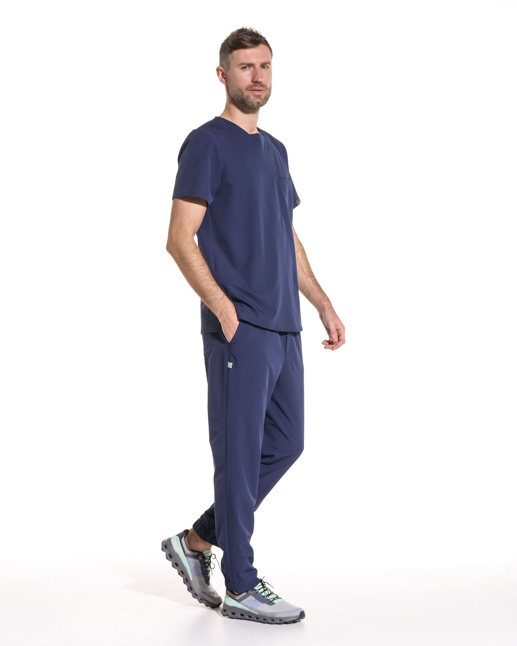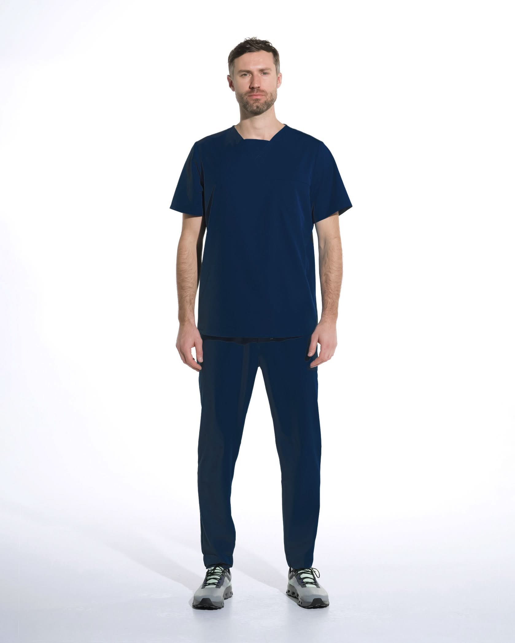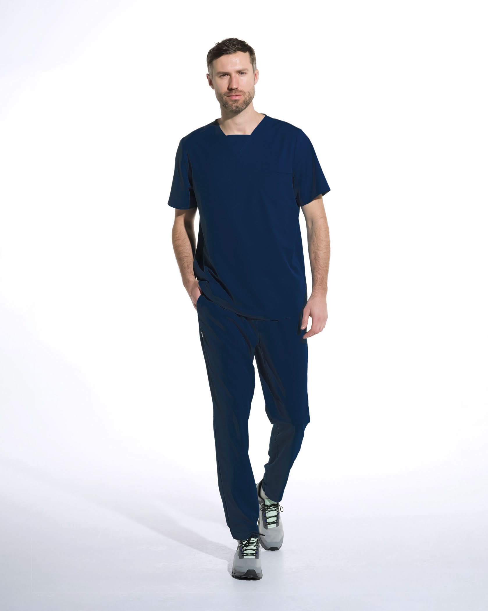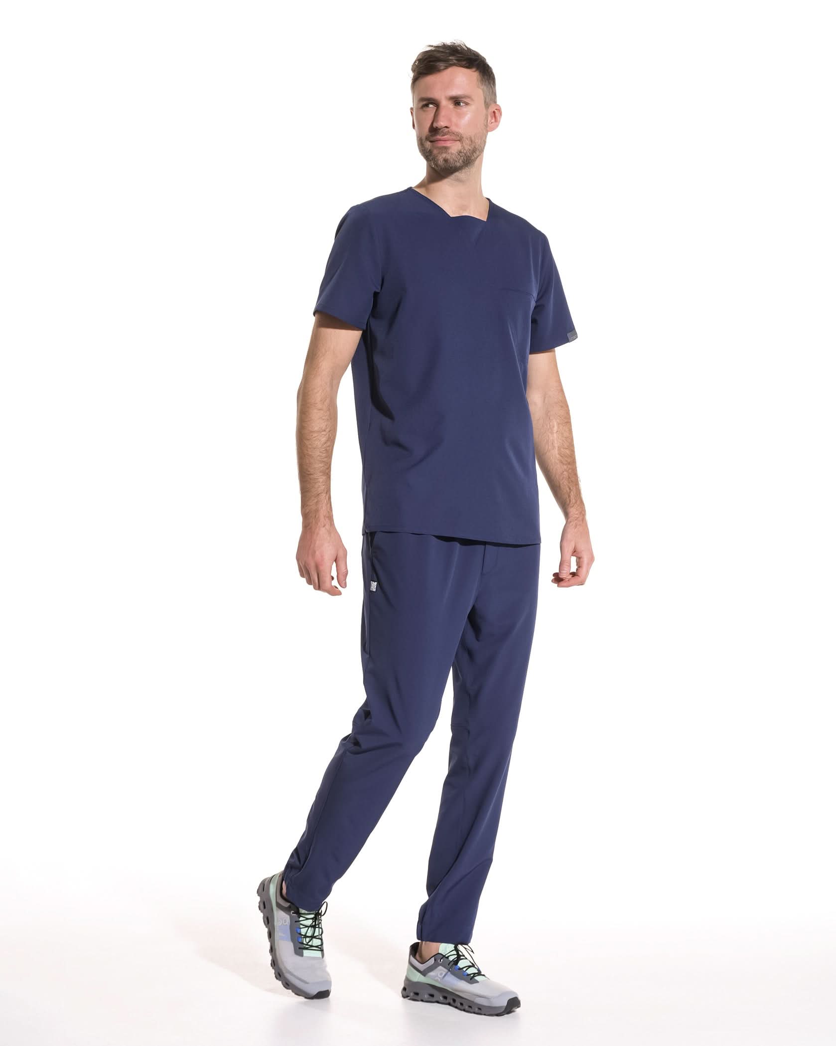 Pantaloni medicali RIZZ turcoaz cu talie elastica si snur reglabil in contrast. Materialul din care sunt confectionati pantalonii este moale, avand atat elasticitate, cat si rezistenta la sifonare.
